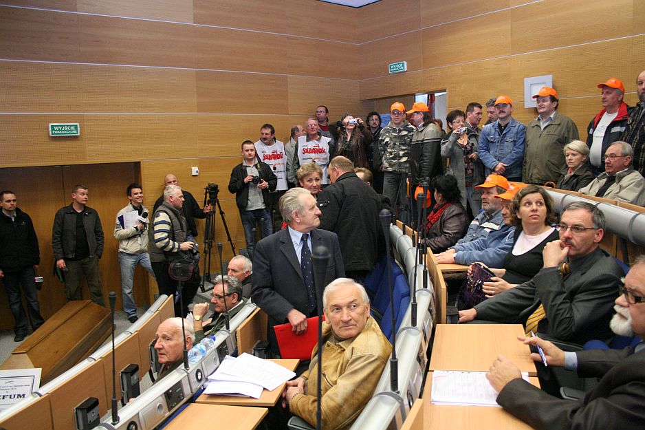 Burzliwe było także rozpatrzenie projektu uchwały „w sprawie: rozpatrzenia skargi grupy radnych na działalność Prezydenta Miasta Dąbrowy Górniczej Pana Zbigniewa Podrazy”. Skargę złożyli radni Jerzy Talkowski, Halina Głowacka, Tomasz Pasek, Grzegorz Jaszczura, jeszcze 21 września 2009 roku. Dłuższe wystąpienie w obronie skargi przedstawił radny (były trzykrotny Prezydent Miasta) J. Talkowski, gdzie wspaniale uzasadnił racje ww. radnych.