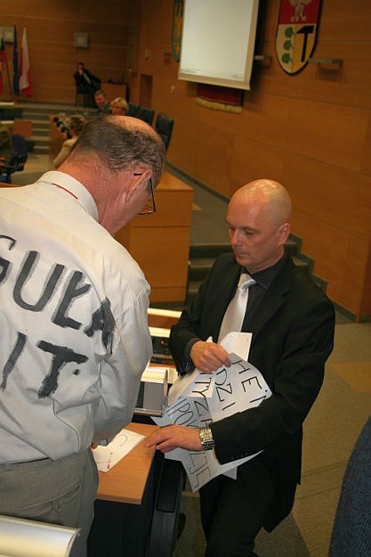 W rezultacie zaapelowałem, aby mieszkańcy popierający Pana Prezydenta nie popierali mnie, bo nie przewiduję bronić ich interesów (tak swoją drogą). Brakowało tylko, żeby Przewodniczący Rady Miejskiej odebrał mi głos, tak jak ostatnio posłowi PIS-u w sejmie wyłączono mikrofon (konkretnie zrobił to niejaki R. Sikorski, Marszałek Sejmu, prywatnie mąż A. Applebaum), gdy ten zaczął dopytywać się o powiązania Prezydenta RP (jeszcze) B. Komorowskiego ze służbami WSI).