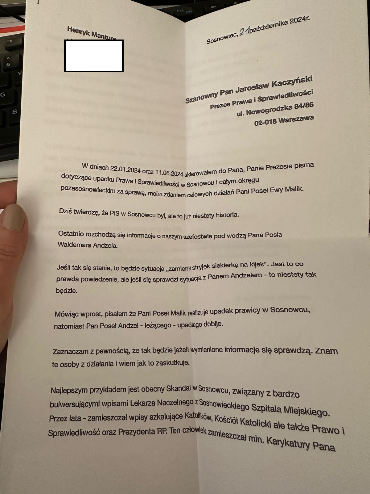 Kiedy Poseł E. Malik poda się do dymisji? (10.04.2024 r.),