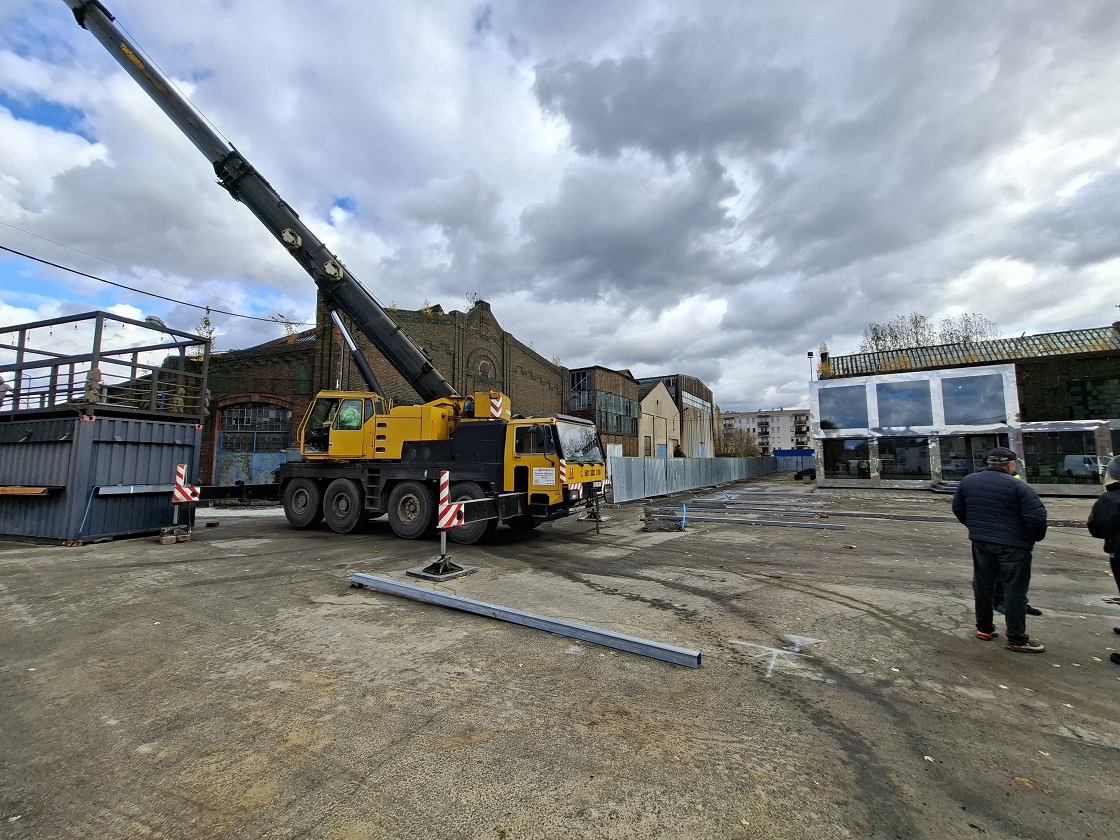 Co do wspomnianego postępu. Wreszcie widać ludzi pracujących przy projekcie FPŻ! Jakiś czas temu ruszył I etap restauracji terenu po zakładach Ponar-Defum (nie wspominam tu o renowacji/odbudowie pierwszego/jedynego budynku przez firmę Piaskowski – to już stare dzieje). Przetarg wygrała firma Strabag (za circa 56 mln zł, co było znacząco najkorzystniejszą ofertą, firmy dąbrowskie, tutejsze tzw. tygrysy, wygrywające przetargi „wg lat”, były bez szans w starciu z gigantem) i ona realizuje etap dotyczący budowy tzw. nowego rynku oraz zbiornika retencyjnego. Pechowo się składa, że tam gdzie stały kontenery handlowo-usługowe prywatnych przedsiębiorców „wpuszczonych” tutaj do sprzedaży pizzy, napojów w tym także kaw/herbat w bardzo dużych ilościach, etc., ogólnie robienia biznesu, będzie akurat zbiornik retencyjny.