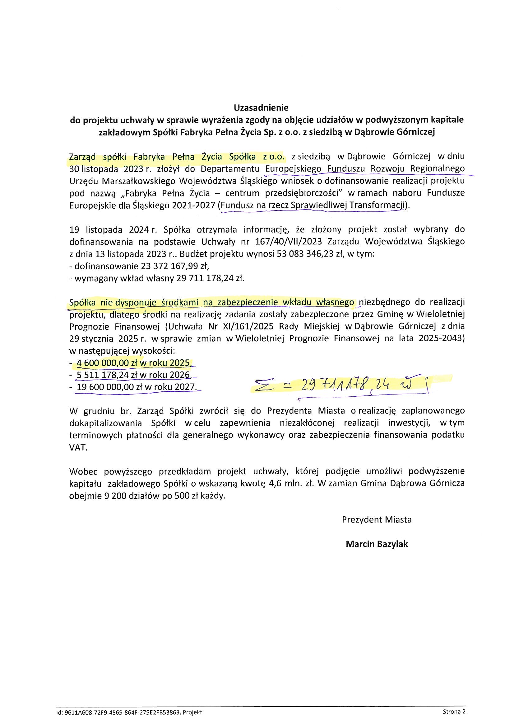 Oba etapy budowy wymagają udziału własnego spółki Fabryki Pełnej Życia Sp. z o.o. (do 30%) przy dofinansowaniu z Urzędu Marszałkowskiego Województwa Śląskiego, czyli chyba z tzw. Funduszu Sprawiedliwej Transformacji. Swoją drogą czy ja dobrze rozumiem, że bez tego transformacja w tzw. Unii Europejskiej jest niesprawiedliwa? Podejrzewam, że politycy POPIS-u (obecnie już KOPIS-u) mogą mi wyjątkowo przytaknąć.