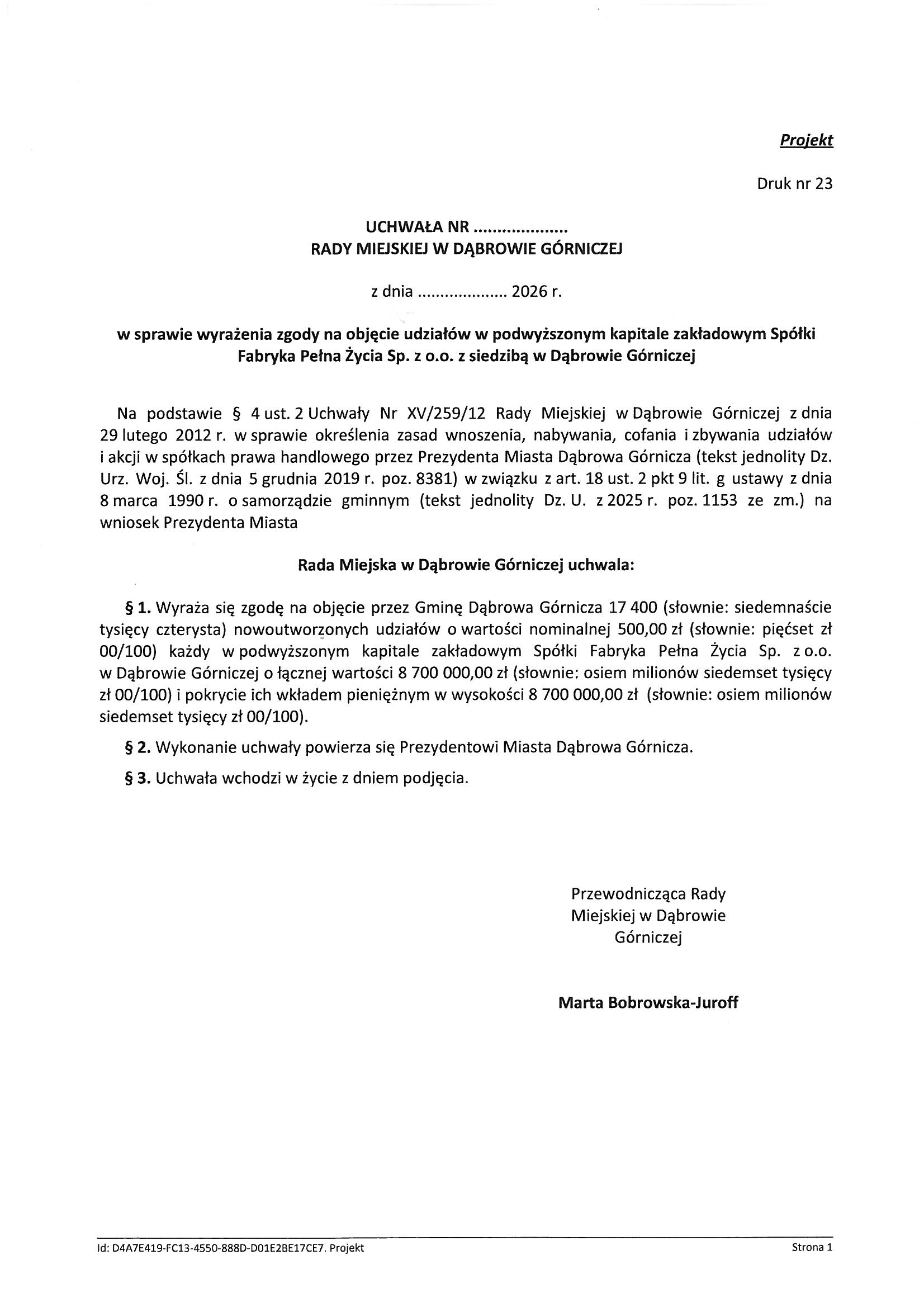 W dniu 05.02.2026 r., zgodnie z wnioskiem Prezydenta Miasta odbyła się nadzwyczajna sesja Rady Miejskiej Dąbrowy Górniczej, która również zgodnie z moimi przewidywaniami przyjęła projekty uchwał przekazujące spółce gminnej Fabryka Pełna Życia Sp. z o.o. w sumie 14,211 mln zł za objęcie 28422 udziałów po 500 zł każdy, w podwyższonym kapitale zakładowym tejże spółki. Przyczyny tej wtopy przedstawiłem we wpisie: FPŻ Sp. z o.o. – wtopa!. Również wyartykułowałem wtedy moje żądania jako mieszkańca, czyli dymisji Prezesa spółki FPŻ Sp. z o.o. (najlepiej całego zarządu), przewodniczącego Rady Nadzorczej FPŻ Sp. z o.o., Prezesa PM MZUM.PL S.A., przewodniczącego Rady Nadzorczej PM MZUM.PL S.A., Naczelnika Wydziału Nadzoru i Kontroli, a na końcu Prezydenta Miasta. Nazwiska proszę sobie wyszukać i dopasować. Nie chodzi mi o nazwiska, ale o pełnione funkcje z szerokim zakresem odpowiedzialności i korzyści finansowych!