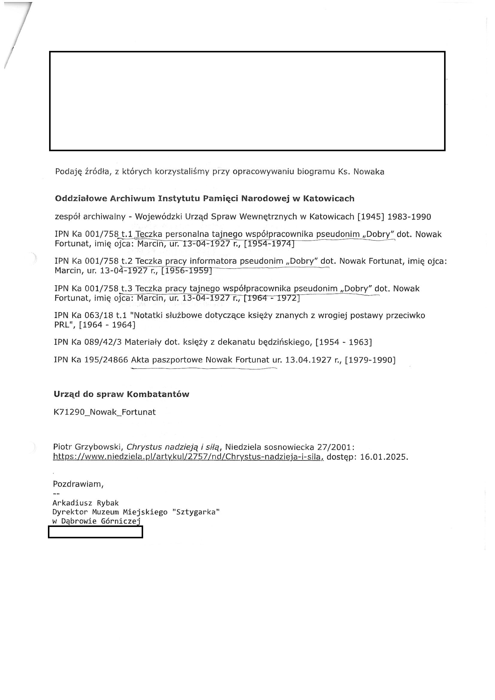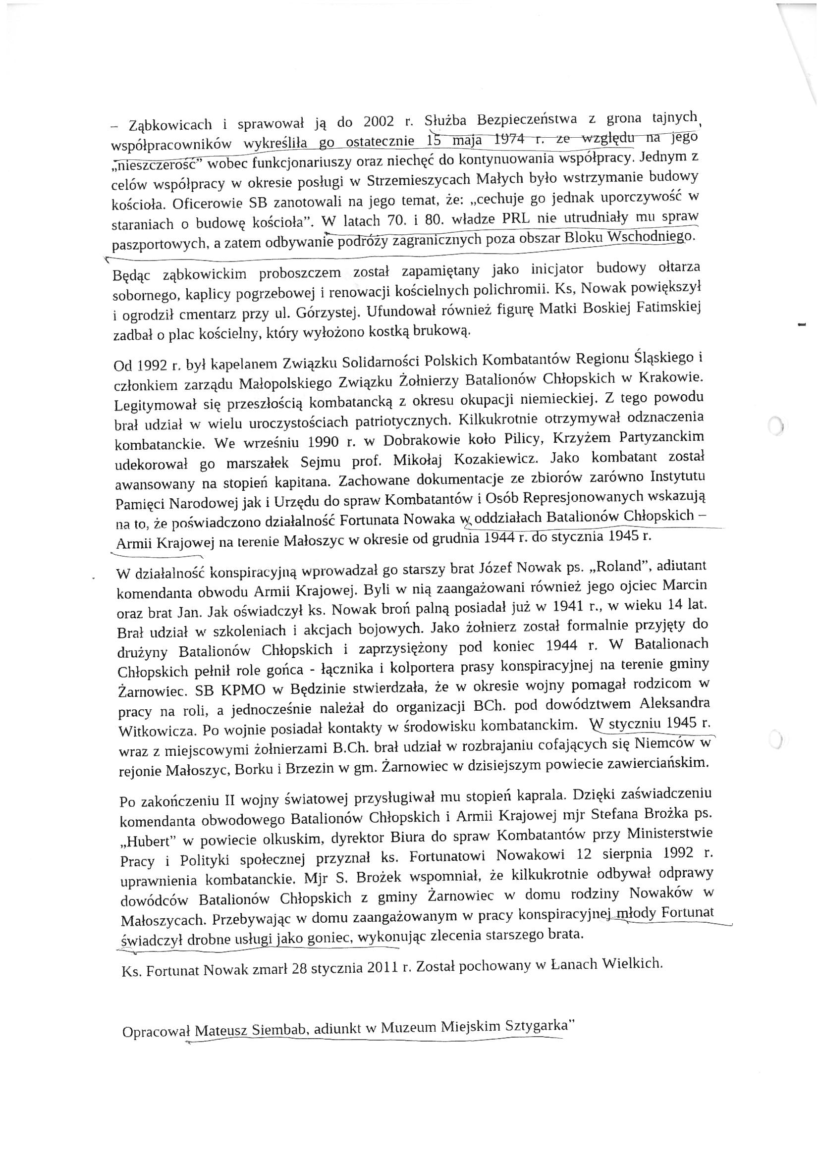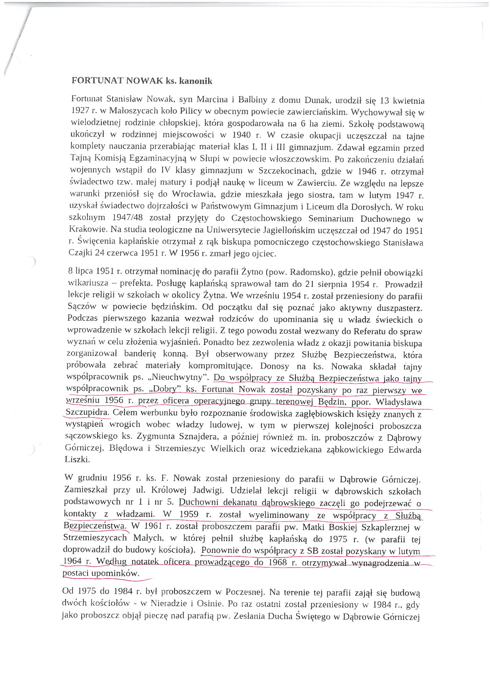 To tyle. Jeszcze biogram Ks. kanonika, opracowany przez historyków z Muzeum Miejskiego „Sztygarka” dla wspomnianej komisji. Jego współpraca ze służbami komunistycznymi jest wg mnie niepodważalna. Pominięto w biogramie wątki związane z mieszkańcami Strzemieszyc Małych. Co do wykreślenia go z grona tajnych współpracowników w 1974 r., to mam duże wątpliwości. Można było bardziej przyłożyć się do tego biogramu.
