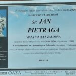 Bardzo przykro mi jest poinformować, że w niedzielę 26.04.2026 r., przeżywszy 54 lata, zmarł Pan Jan Pietraga. Msza Święta Żałobna odbędzie się w czwartek 30.04.2026 r. o godz. 11.00. w Dąbrowie Górniczej – Gołonogu w Kościele Św. Antoniego z Padwy. Następnie zostanie odprowadzony na miejsce wiecznego spoczynku na cmentarz na Górce Gołonoskiej.